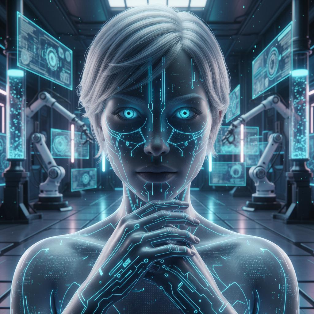 Ilustracja: Ewolucja od chatbota do zaawansowanej postaci AI, rozwój symulacji AI w nowoczesnym środowisku laboratoryjnym