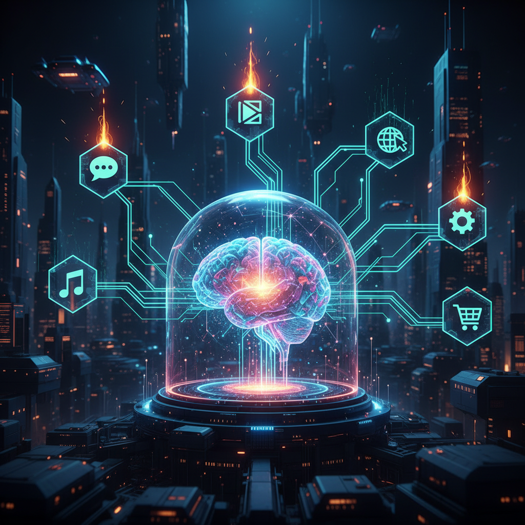 Połączenie systemów różnych dostawców (np. mapy, rezerwacje, komunikatory) w jednym interfejsie AI.